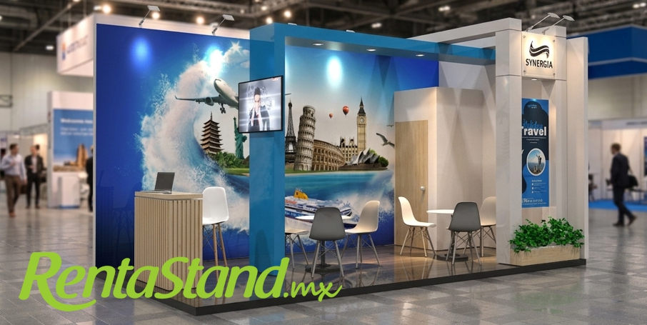 Se incluye en el costo del servicio todas las impresiones que se muestran en el diseño. Se incluye duela o tarket en el area de piso y la tarima es opcional; consulte nuestras promociones y obtengalas de manera gratuita contratando su stand con anticipación.